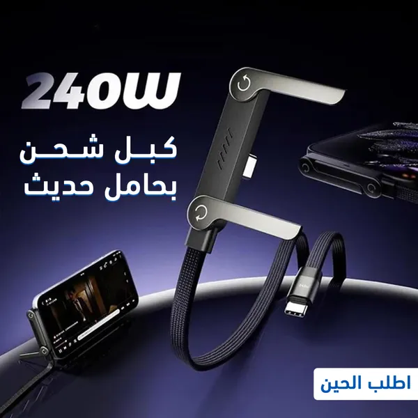 زوايا تسويقية: شحن فائق السرعة ويوفر وقتك بسرعة عالية حامل مخفي يعمل عرض وطول بسهولة كابل مضفر قوي يتحمل الاستخدام اليومي زاوية 90° تسهل اللعب ومشاهدة الفيديو خفيف وسهل الحمل للسفر والعمل يشحن جوال تابلت ولابتوب بكفاءة عالية الكابل يمنع التشابك ويخليك مرتاح يشحن ومشاهدة الفيديو بنفس الوقت تصميم أنيق وعملي للطاولة متعدد الاستخدامات يناسب كل المناسبات ـــــــــــــــــــــــــــــــــــــــــــــــــــــــــــــــــــــــــــــــــــــــــــــــــــــــــــــــــــــــــــــــــــــــــــــــــــــــــــ المميزات: شحن فائق 240 واط لجميع أجهزة Type-C الحامل قابل للطي بالعرض والطول كابل مضفر ومقاوم الانحناء موصلات معززة ضد الكسر طول الكابل 1.5 متر لحرية الحركة زاوية 90° لتسهيل اللعب والمشاهدة يدعم جوال تابلت لابتوب وخفيف الحمل ـــــــــــــــــــــــــــــــــــــــــــــــــــــــــــــــــــــــــــــــــــــــــــــــــــــــــــــــــــــــــــــــــــــــــــــــــــــــــــ المواصفات الماركة: جينريك الضمان: 7 يوم وكيل الضمان: دوزن النوع كابل شحن مع حامل مخفي 2 في 1 الطول 1.5 متر قدرة الشحن 240 واط الموصل USB-C المادة كابل مضفر مع موصلات معززة الاستخدام داخلي وخارجي الوزن 4.6 أونصة ـــــــــــــــــــــــــــــــــــــــــــــــــــــــــــــــــــــــــــــــــــــــــــــــــــــــــــــــــــــــــــــــــــــــــــــــــــــــــــ محتويات المنتج 1 x كابل شحن مع حامل مخفي 2 في 1 ـــــــــــــــــــــــــــــــــــــــــــــــــــــــــــــــــــــــــــــــــــــــــــــــــــــــــــــــــــــــــــــــــــــــــــــــــــــــــــ طريقة الاستخدام وصل الكابل بالجهاز اضبط الحامل عرض أو طول استمتع بالشحن والمشاهدة